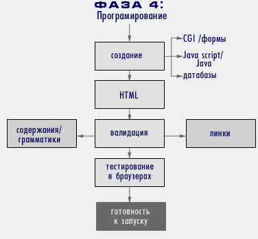 После того как вы разработали дизайн и сверстали модели основных страниц, можно приниматься за техническую работу - HTML кодирование, CGI формы, датабазы и прочее программирование.