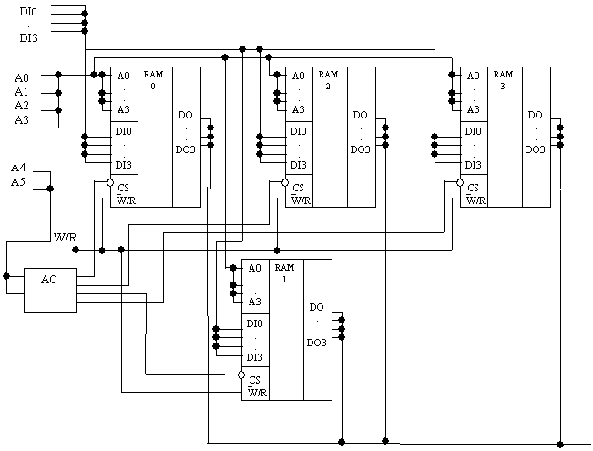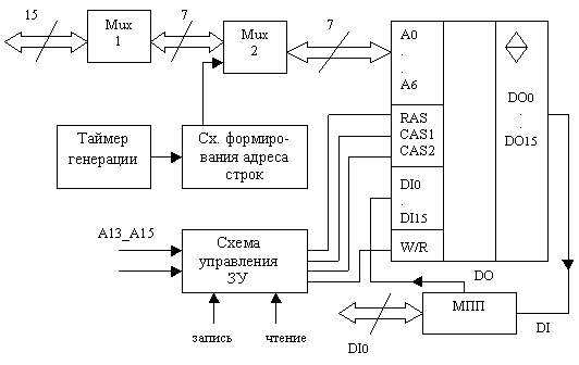 Способы увеличения разрядности емкости блоков памяти на динамической памяти.
