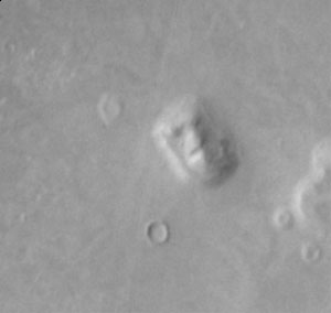 Но вернемся в 1976 год. В июле "Викинг-1" производил съемку поверхности Марса в области Цидония (Cydonia) для определения места последующей посадки "Викинга-2". Он передал снимки поверхности планеты на Землю. Ученые были просто поражены - на поверхности были видны образования, напоминающие египетские пирамиды и лицо . Как только фотографии попали в прессу, моментально появились слухи, что американский космический аппарат обнаружил свидетельства существования жизни на Марсе. Официальные лица объяснили что пирамиды и лицо не что иное как игра света и тени .