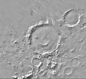 Тот же самый зонд "Викинг-1" получил изображения кратера Галле (215 км в поперечнике), расположенного на восточной окраине бассейна Аржир. Веселая «мордашка», радостно взиравшая на искусственный спутник Марса, не могла не запомниться всем, кто ее видел.