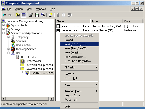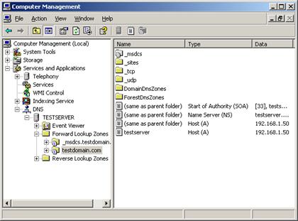 1. Запустите "DNS Management" (Start - Programs - Administrative Tools - DNS Management)