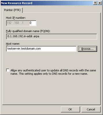 Наконец, нам понадобится запись PTR на нашу подсеть 192.168.1.0.