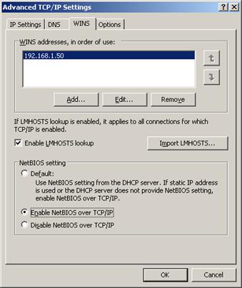 Мы можем ввести адрес сервера WINS (Windows Internet Naming Service), если будем его устанавливать. Он выбирается в пункте [Control Panel] - [Software] - [Windows Components] - [Network Services] и имеет только ряд опций по конфигурации, так что у вас не должно возникнуть каких-либо проблем.
