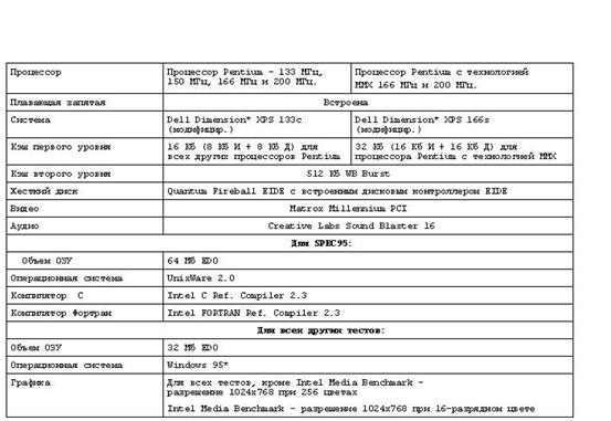 Приведу в пример конфигурацию системы, на которой тестировались процессоры для определения индекса iCOMP Index 2.0. Следует отметить, что конфигурация систем для тестов SPEC95 и Intel Media Benchmark немного отличались от приведенной ниже.