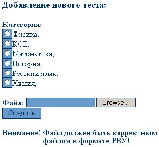 После создания файла, необходимо в меню администратора выбрать пункт «Добавить новый тест». Появится форма как на рис. 10.