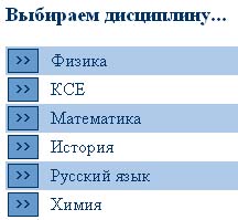 Рис. 12. Выбор теста, связанного с выбранной дисциплиной.