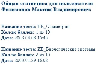 Статистика по пользователям – какие тесты и когда проходил определенный пользователь.