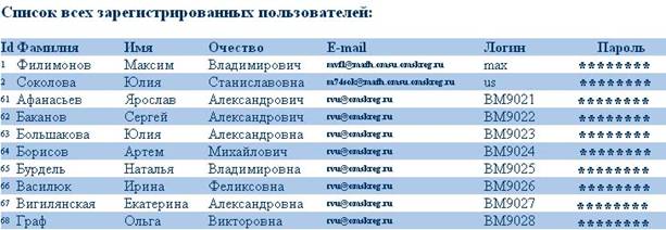 Для того, чтобы посмотреть полный список зарегистрированных в системе пользователей, нужно в меню администратора в разделе «Статистика» выбрать пункт «Список всех пользователей» получим результат, как на рис. 16.