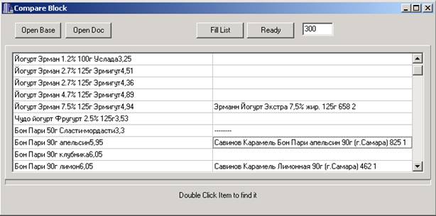 В данной работе были решены следующие задачи. Первое, что было сделано – это изучена и проанализирована предметная область - торговые предприятия, продуктов питания. Реализована возможность представления данных в иерархической структуре. Был построен алгоритм, вычисляющий меру похожести двух табличных позиций. Изучена среда разработки приложений C++ Builder 5 и создан проект. На данном этапе разработка приложения не остановлена, она продолжается. Следующим ее этапом будет реализация иерархического идентификатора, улучшение блока транскрипции, возможно, если будет необходимо, перевода с одного языка в другой. Также будет перенесен окончательный выбор признаков в блок предварительной обработки. И, наконец, построение механизма анализа идентифицированных документов.