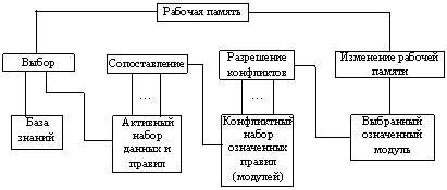 В процессе решения той или иной задачи в подсистеме производится интерпретация (означивание) того или иного правила и выполнение действий, определяемых этим правилом. Выбор (идентификация) того или иного правила основан на сопоставлении условий Ii и в общем случае приводит к нескольким правилам одновременно. При этом возможно порождение порождается конфликтного набора.