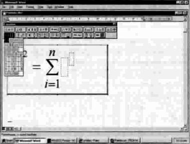 Если Редактор формул запущен из WinWord 7.0, то для завершения работы с ним и вставки созданной формулы в текущий документ следует установить курсор мыши вне кадра формулы и выполнить щелчок. Если Редактор формул запущен автономно, то созданную формулу можно перенести в документ посредством буфера промежуточного хранения. Для этого необходимо маркировать формулу с помощью команды SelectAll меню Edit и вызвать команду Сору того же меню. Вставка содержимого буфера промежуточного хранения в документ осуществляется с помощью команды Paste меню Edit редактора WinWord 7.0.