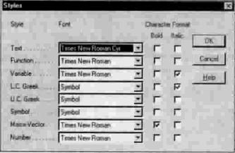 q После стрелки можно ввести пробел и текст "среднее генеральной - выборки". Следует помнить, что шрифт, установленный при вводе текста, должен быть русифицированным. По умолчанию используется Times New Roman (нерусифицированный). Для изменения вида шрифта можно воспользоваться командой Define . (Определить) меню Style. В открывающемся диалоговом окне (рис. 13), в поле списка Text можно задать подходящий русифицированный шрифт.
