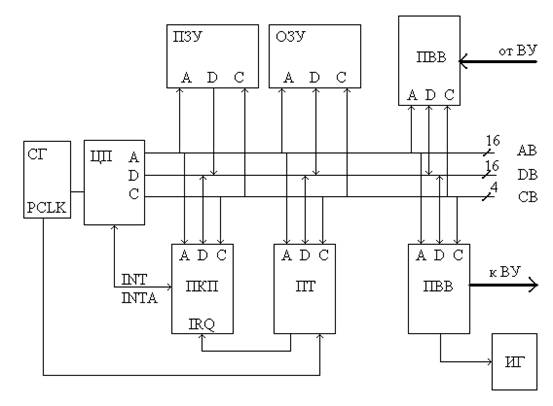 Системная шина контроллера состоит из трех составляющих: шины адреса (AB), шины данных (DB), шины управления (CB).