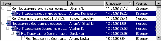 · После этого программа производит загрузку заголовков сообщений с сервера телеконференций.