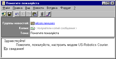 При этом появится окно редактирования сообщения (Рис. 8). Имя конференции автоматически подставляется в поле "Группа новостей".