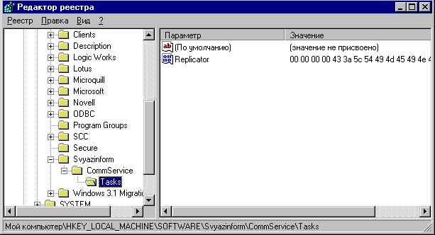 (ключ HKEY_LOCAL_MACHINE\SOFTWARE\Svyazinform\CommService\Tasks, рис.2.8).