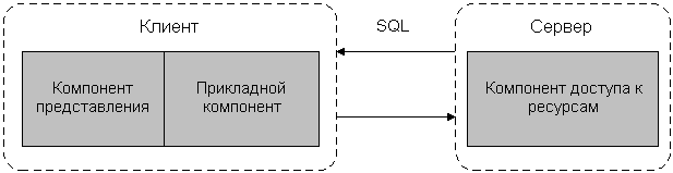 Клиент направляет запросы к информационным ресурсам (например, к базам данных) по сети удаленному компьютеру. На нем функционирует ядро СУБД, которое обрабатывает запросы, выполняя предписанные в них действия и возвращает клиенту результат, оформленный как блок данных. При этом инициатором манипуляций с данными выступают программы, выполняющиеся на компьютерах-клиентах, в то время как ядру СУБД отводится пассивная роль - обслуживание запросов и обработка данных.