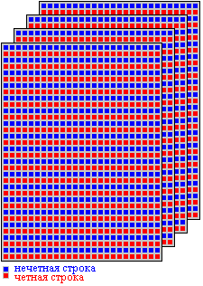 SDRAM (Synchronous Dynamic Random Access Memory) – это синхронизированная динамическая память с произвольным порядком выборки. Одним словом, синхронная динамическая оперативная память. SDRAM состоит из физических ячеек, которые собраны в страницы. Размер страницы может быть от 512 байт до нескольких килобайт. Каждая страница разбита на два банка: в одном банке ячейки с нечетными адресами строк, а в другом – с четными. Каждая ячейка имеет свой адрес, состоящий из номера (адреса) строки и номера (адреса) столбца. Сначала передается номер строки, затем номер столбца. По сути дела, номер – это набор электрических сигналов, которые надо сгенерировать, передать и обработать. На все это необходимо затратить время. В страничном режиме, передав номер строки можно получить доступ к нескольким ячейкам с разными номерами столбцов, то есть, не надо для каждой из них передавать номер строки, достаточно только номера столбца. Экономия времени налицо. Двигаемся дальше, строки можно разделить на четные и нечетные. Получается два банка: один – с четными строками, а другой – с нечетными. В то время, когда происходит обращение к одному банку, в другом происходит выборка адреса или еще что. Опять же экономия времени. Такой режим иногда называют расслоением.