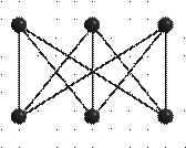 Другая старая топологическая задача, которая особенно долго не поддавалась решению и будоражила умы любителей головоломок, известна как “задача об электро -, газо - и водоснабжении”. В 1917 году Генри Э.Дьюдени дал ей такую формулировку. В каждый из трёх домов, изображенных на рисунке, необходимо провести газ, свет и воду.