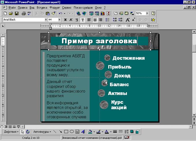 PowerPoint97 - работа с текстом в презентацияхРефераты >> Программирование и компьютеры >> PowerPoint97 - работа с текстом в презентациях