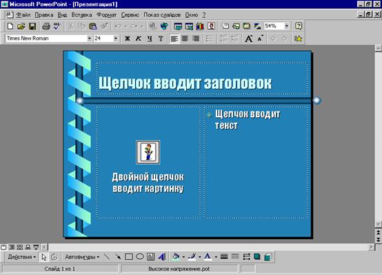 Шаблоны презентации содержат цветовые схемы, образцы слайдов и заголовков, а также стилизованные шрифты. При выборе шаблона сразу устанавливаются цвета фона, а также стандартные параметры форматирования текста, графики, рисунков и других объектов всех слайдов презентации. Если в дальнейшем вам не понравится оформление презентации, вы всегда сможете назначить другой шаблон.