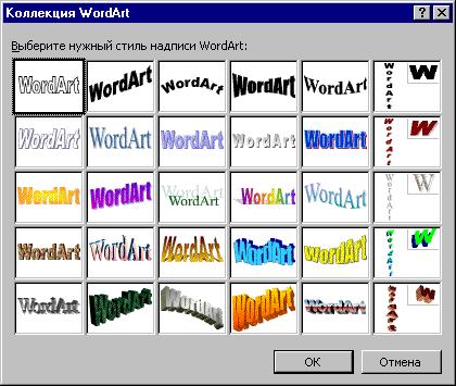 Специальные текстовые эффекты разрабатываются посредством приложения Microsoft WordArt, поставляемого с пакетом Microsoft Office 97. Учтите, что фигурный текст, созданный средствами WordArt, является графическим объектом, а не текстом, и его форматирование осуществляется с помощью кнопок панели инструментов рисования. Кроме того, невозможно выполнить проверку орфографии фигурного текста и отобразить его в режиме структуры.