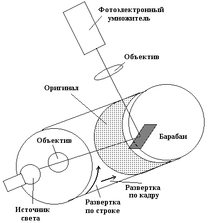 Рис. 3.1.7. Способ формирования изображения в барабанных сканерах