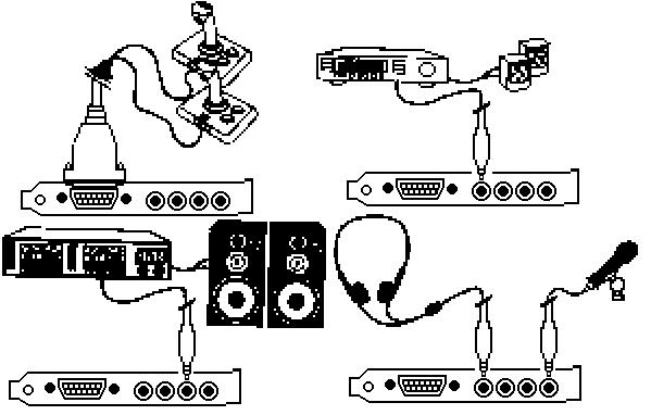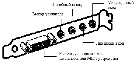 Внешние устройства, подключаемые к звуковой карте, изображены на (Рис. 4.1.11).