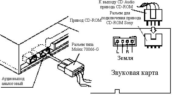 Рис. 4.1.12. Подключение привода CD-ROM к звуковой карте