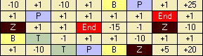 Игра ведется до тех пор, пока счет игрока не станет равным нулю или маркер не попадет на ячейку с номиналом |End|.