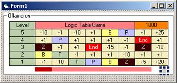 Здесь описывается процесс программирования «текстовой версии» логической табличной игры «Oflameron». Номиналы ячеек представлены на экране в символьном виде, а ячейки представляют собой элементы Label. В следующей части документа будет представлено полное описание процесса разработки графической версии игры и версии игры для карманных компьтеров (PDA).