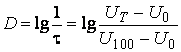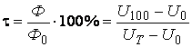 где: Ф и Ф0 — световой поток до и после камеры смешения соответственно, U100 и U0 — сигнал при закрытой и открытой крышке фотометра, UТ — текущее значение сигнала.