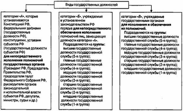 Существует и иная классификация. Государственные должности делятся на три категории: «А», «Б», «В» (см. Рис.2.1.).