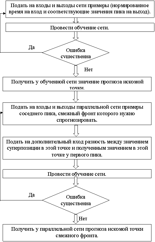 Целесообразно параллельно проводить прогнозирование смежного пика. Прогнозируемая точка смежного фронта соседнего пика может быть получена следующим способом: