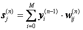 где M – число нейронов в слое n-1 с учетом нейрона с постоянным выходным состоянием +1, задающего смещение; yi(n-1)=xij(n) – i-ый вход нейрона j слоя n.