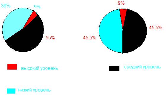 Как мы видим, и в контрольной группе, и в экспериментальной мало детей с высоким уровнем формирования познавательной активности – 9%, средним уровнем обладает 55% и 45,5% в обеих группах, а низким уровнем познавательной активности владеют дети экспериментальной группы больше, чем в контрольной 45,5% и 36%.