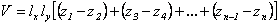 Алгоритм трассировки лучей можно использовать, кроме того, для определения физических свойств сплошного тела. Полное рассмотрение этого вопроса не входит в эту работу. Однако для иллюстрации этого подхода приведем один пример. В частности, объем любого сплошного тела можно определить, аппроксимируя его суммой маленьких прямоугольных параллелепипедов. Это можно проделать, породив множество параллельных лучей, расположенных на определенных расстояниях друг от друга. Точки пересечения каждого луча с заданным объемом вычисляются и упорядочиваются вдоль направления этого луча. Если подвергнуть луч переносу, совмещающему его с осью z, как это было описано выше, то объем каждого прямоугольного параллелепипеда будет равен: