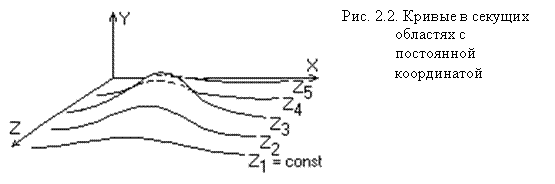 z = const по возрастанию расстояния до них от точки наблюдения. Затем для каждой плоскости, начиная с ближайшей к точке наблюдения, строится кривая, лежащая на ней. Алгоритм удаления невидимой линии заключается в следующем: