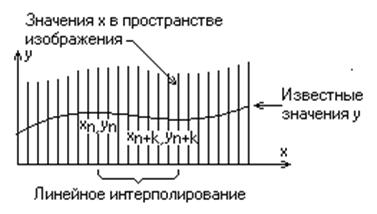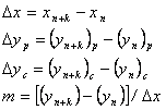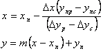 Точное значение точки пересечения двух прямолинейных отрезков, которые интерполируют текущую и предшествующую кривые, между точками (xn, yn) и (xn+k, yn+k ) (рис. 3.6) задается формулами: