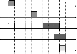С учетом задержек Di и ti получаем, что, если на выходе обученного нейрона в момент t появился единичный сигнал, то единичные импульсы на входы нейрона поступили в интервалы времени di = [ t - ti - Di ; t - Di -1]. Неопределенность моментов поступления входных импульсов будет тем меньше, чем меньше задержки ti.
