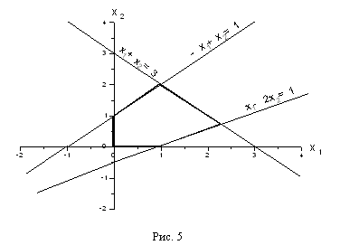 получим рисунок 5, где выделена область, в которой выполняются одновременно все ограничения (1.32). Обратите внимание на то, что получившаяся область имеет вид выпуклого многоугольника.