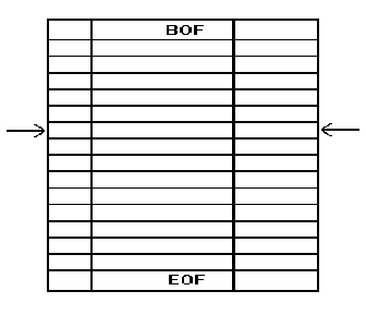 TDataSet.BOF - read-only Boolean свойство, используется для проверки, находится ли курсор в начале таблицы. Свойства BOF возвращает true в трех случаях: