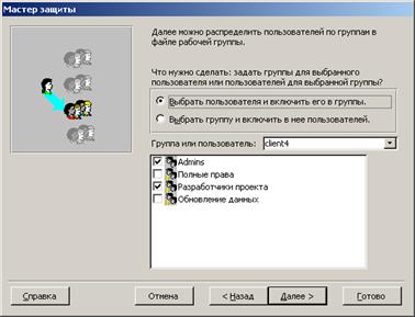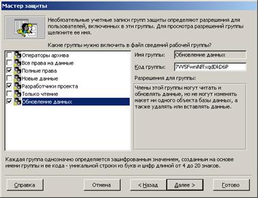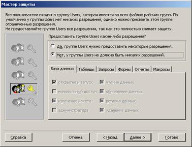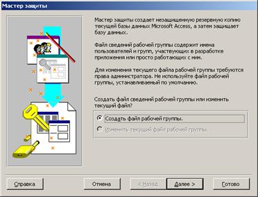 Чтобы запустить мастера защиты, выберите команду Сервис à Защита à Мастер (Tools à Security à User-Level Security Wizard). Откроется окно диалога, представленное на рисунке 8.