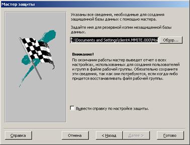Теперь вы готовы к запуску мастера защиты (если, конечно, зарегистрировались как владелец базы данных, которую хотите защитить). Предварительно следует сделать на всякий случай запасную копию этой базы данных (хотя мастер может сам сделать это вместо вас).