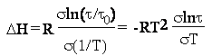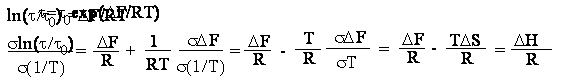 где DH - энтальпия активации при условии независимости t0 от Т. Отсюда