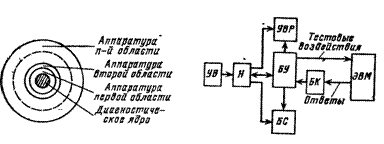 При диагностировании ЭВМ наиболее широкое распространение получил принцип раскрутки, или принцип расширяющихся областей, заключающийся в том, что на каждом wane диагностирования ядро и аппаратура уже проверенных исправных областей устройства представляют собой средства тестового диагностирования, а аппаратура очередной проверяемой области является объектом диагностирования.