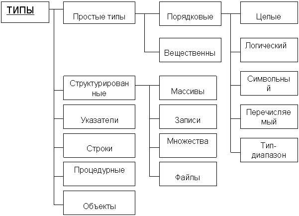 Турбо Паскаль характеризуется разветвлённой структурой типов данных.