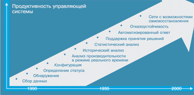 Системы начала 90-х гг. обеспечивали простой сбор данных об управляемых объектах и по сути в очень малой степени позволяли осуществлять реальное управление. Только вкладывая значительные средства в консультации специалистов со стороны, пользователи таких систем могли извлечь из голых управляющих данных необходимые сведения для эффективной поддержки своих информационных сред.