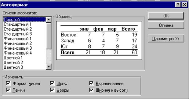 Команда Формат | Автоформат . позволяет быстро оформить готовую таблицу воспользовавшись готовым Списком форматов.