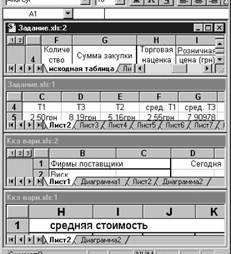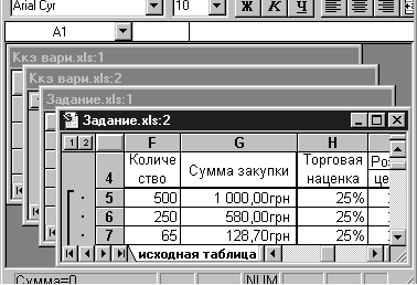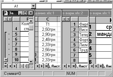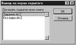 Команды Скрыть и Показать Скрывают окно активной рабочей книги или показывают скрытое ранее окно. Окно, которое будет показано выбирается из списка скрытых окон. Хотя скрытое окно и не видно, оно по прежнему открыто. Можно скрыть рабочую книгу, которая должна быть открыта, но не обязана быть видимой. Если окно рабочей книги защищено паролем, то пароль будет запрошен и при скрытии окна.